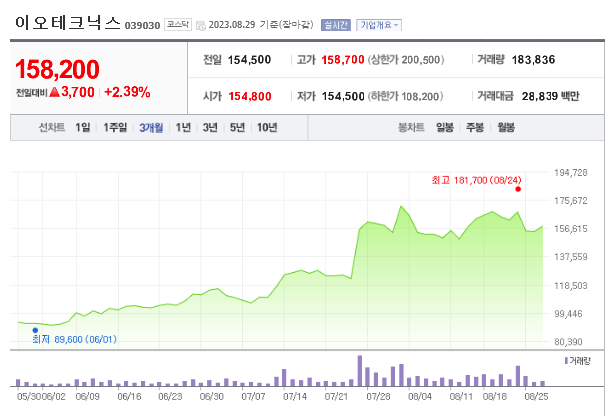 이 글에서는 이오테크닉스 주가 전망과 목표 주가, 기업 정보에 대해서 설명합니다. 주식 시장에서 중요한 것은 미래의 기업 가치를 예측하고 선제적으로 움직이는 것입니다. 투자 대상을 선택하기 전에 현재 기업의 현황과 데이터를 확인하는 것이 필요합니다. 이오테크닉스 주식의 주요 현황과 투자 정보를 확인하시고 주식 투자에 유용한 정보들을 모아두었으니 투자 결정에 도움을 받으실 수 있을 것입니다..