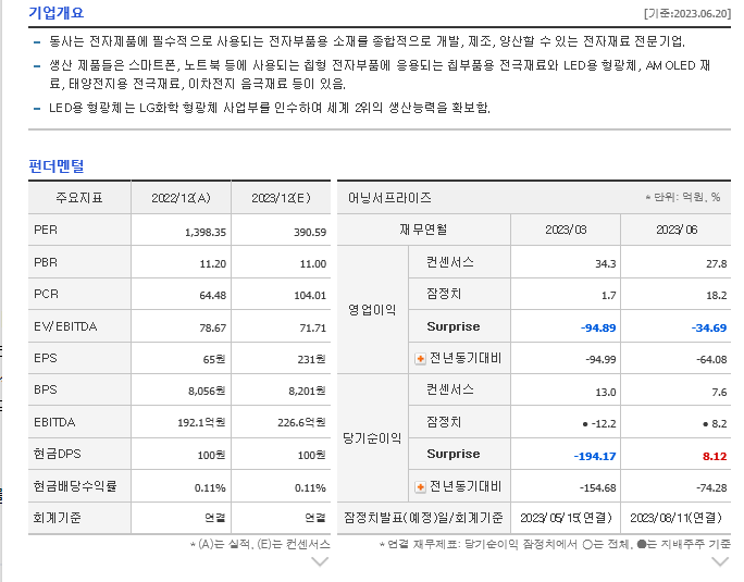 -2023년 3월 전년동기 대비 연결기준 매출액은 2.1% 감소, 영업이익은 95% 감소, 당기순이익 적자전환. 최근 글로벌 배터리 시장에서는 에너지 밀도 향상을 통한 배터리 용량확대를 위해 양극의 High-Nickel 화가 활발히 이루어지고 있기 때문에, 실리콘 음극활물질의 음극 적용 확대가 불가피할 것으로 전망. 은 분말, 글라스 프릿, 유기 조성물을 독자적으로 개발 내재화하여 매출을 확대해 나가고 있음.