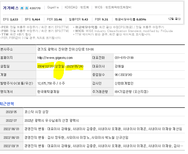 기가비스는 반도체 및 관련장비 기업입니다. 대표자는 강해철 이며 설립일은 2004/02/20, 주식 상장일은 2023/05/24입니다. 전체 종업원 수는0명 이고 본사 주소는 경기도 평택시 진위면 진위산단로 53-86입니다.