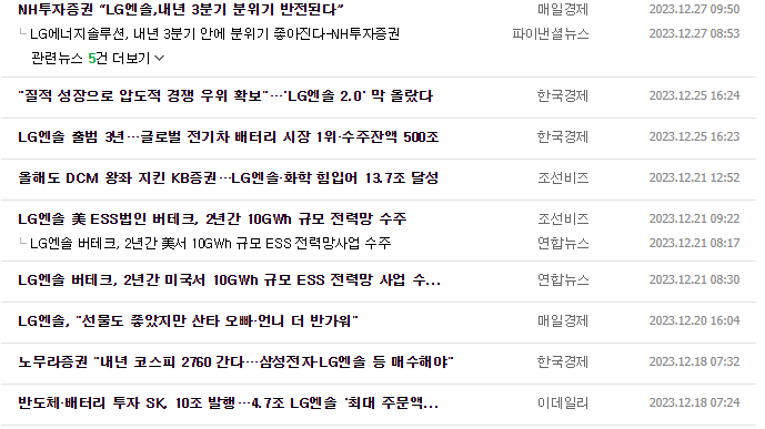 LG에너지솔루션은 주로 배당주와 관련하여 언급되었던 기업 중 하나입니다. 최근에는 2차전지 관련주들의 호황으로 인해 주가가 상승한 적도 있습니다.
