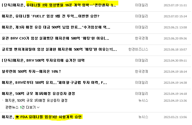 메지온, 유데나필 'FUEL2' 임상 9월 전 투약...이번...