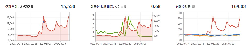 현재 흥구석유의 주가는 15,550원이며 전일 대비 원의 모습을 보이고 있습니다. 주주현황을 살펴보면 김상우(외 3인)이 지분 32.23%를 소유하고 있습니다. 흥구석유는 석유 및 가스 기업으로, 장중 기준으로 주가는 15,550원입니다. 시가 총액은 2332억 원이며 발행 주식수는 15,000,000주입니다. 외국인 보유 비중은 0.68%이며, 장중 거래량은 7,706,779주를 기록했습니다. 매출액은 1,267억 원을 달성했습니다.