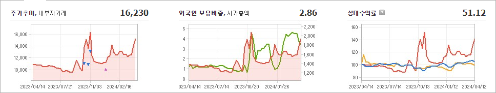 한국석유의 현재 주가는 16,230원이며 전일 대비 원의 모습을 보이고 있습니다. 한국석유의 주주현황을 살펴보면 강승모(외 16인)이 지분 49.85%를 소유하고 있습니다. 한국석유는 화학 기업으로, 장중 기준으로 주가는 16,230원입니다. 한국석유의 시가 총액은 2060억 원이며 발행 주식수는 12,694,120주입니다. 외국인 보유 비중은 2.86%이며, 장중 거래량은 4,314,946주를 기록했습니다. 또한 매출액은 6,792억 원을 달성했습니다.