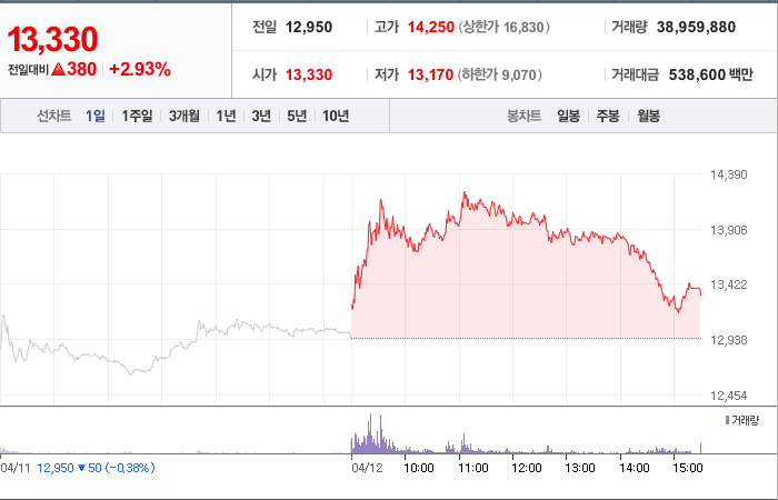 대한전선의 현재 주가는 13,330원이며 전일 대비 -3.90원 하락했습니다. 주주현황을 살펴보면 호반산업(외 2인)이 지분의 41.98%를 소유하고 있습니다. 대한전선은 전기장비 기업으로, 현재 주가는 13,330원입니다. 시가 총액은 2조 4,853억 원이며 발행 주식수는 186,447,300주입니다. 외국인 보유 비중은 6.95%이며, 거래량은 39,353,665주입니다. 매출액은 28,440억 원입니다.