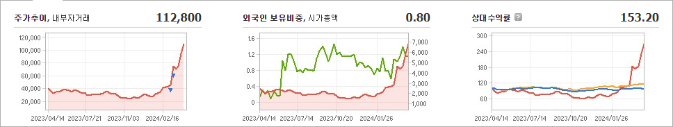 자람테크놀로지의 현재 주가는 112,800원이며 전일 대비 -4,800원으로 하락하였습니다. 주주현황을 살펴보면 백준현(외 5인)이 지분의 57.74%를 소유하고 있습니다. 자람테크놀로지는 반도체 및 관련장비 기업으로, 현재 주가는 112,800원입니다. 시가 총액은 6991억 원이며 발행 주식수는 6,197,730주입니다. 외국인 보유 비중은 0.80%이며, 장중 거래량은 517,688주를 기록했습니다. 또한, 매출액은 116억 원을 달성했습니다.