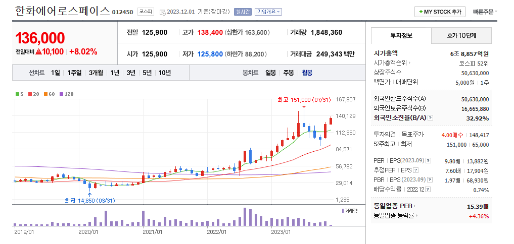 한화에어로스페이스 주가 분석