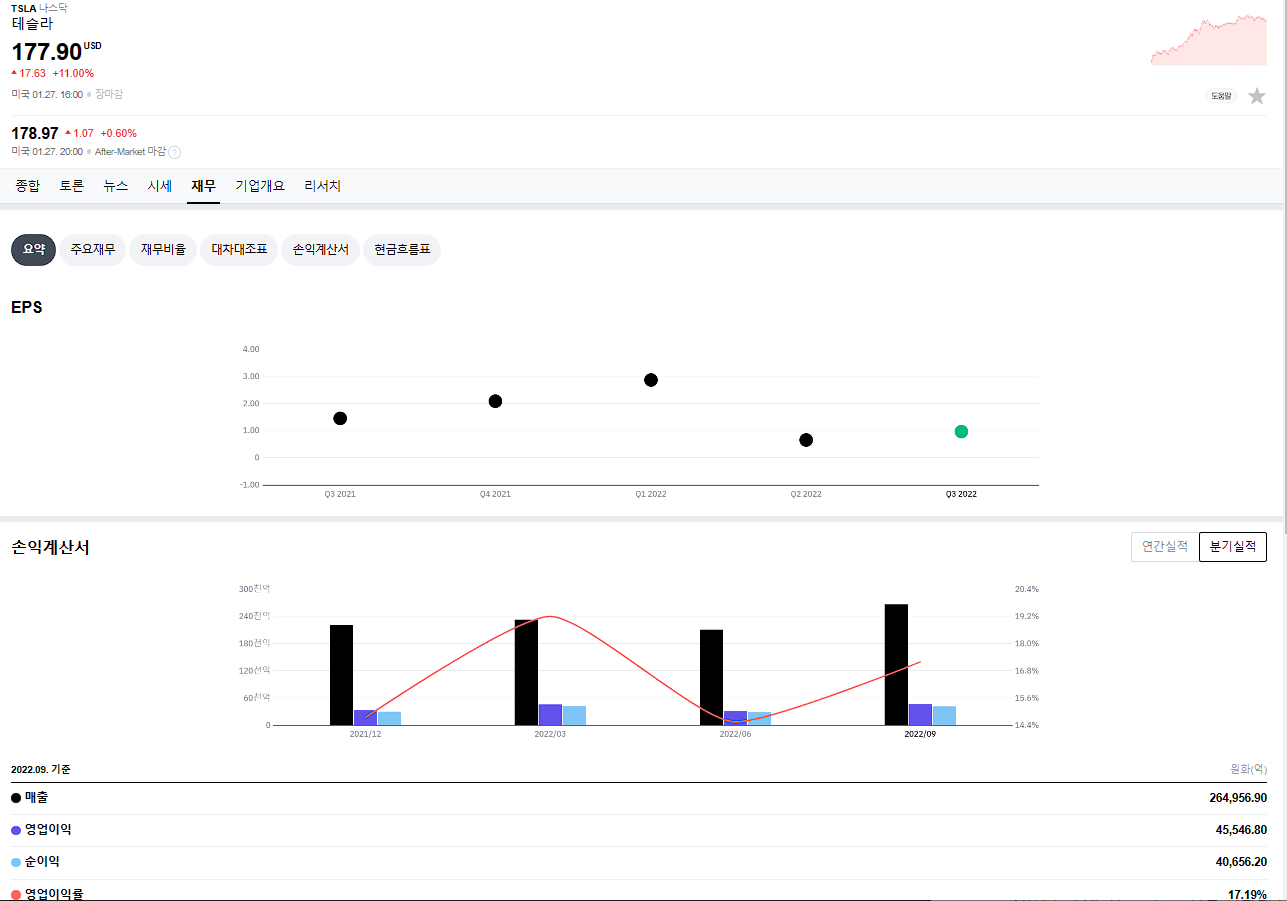 시가총액을 살펴보면 우리나라 금액으로 693조에 달하는 큰 큐모를 가지고 있습니다. 지금의 주가가 많이 빠져있다고 해서 테슬라의 주식이 가치가 떨어졌다고 볼 수는 없습니다. 지금 진행하고 있는 자율주행 사업과 에너지 사업까지 앞으로 성장세를 고려한다면 성장가치는 충분하며 부채비율이 줄어들고있는 모습또한 볼 수있습니다. 미래를 바라보는 사업을 다수 보유한 테슬라의 앞으로 전망이 솔직히 기대가 되지 않을 수가 없습니다.