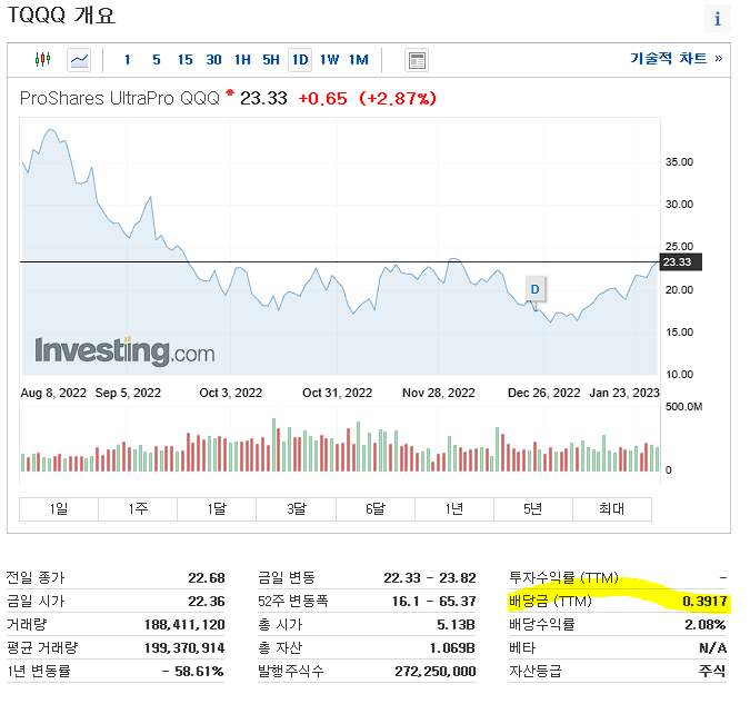 이렇듯 미국의 경제에 기대어 흘러가는 주식이 TQQQ이기에 미국경제 전반에 대한 흐름을 긍정적으로 바라볼 경우라면 매수를 그렇지 않다면 고위험주식으로 판단하는게 옳을 것으로 보입니다. 저는 쫄보이기 때문에 QQQ를 선호하는 편이지만 흐름에 맞게 TQQQ를 활용하는 것도 좋다고 보고 있습니다.