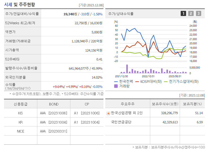 이 글에서는 한국전력 주가 전망과 목표 주가, 기업 정보에 대해서 설명합니다. 주식 거래에서 중요한 부분은 현재 기업 가치보다는 미래의 기업 가치를 예측하고 먼저 행동하는 것입니다. 투자할 종목을 고르기 전에 현재 기업의 상황과 지표를 살펴보는 것이 중요합니다. 한국전력 주식의 주요 현황과 투자 정보를 확인하시고 주식 투자에 도움이 될 만한 정보들을 모아 놓았으니 투자를 고려하실 때 참고하세요..