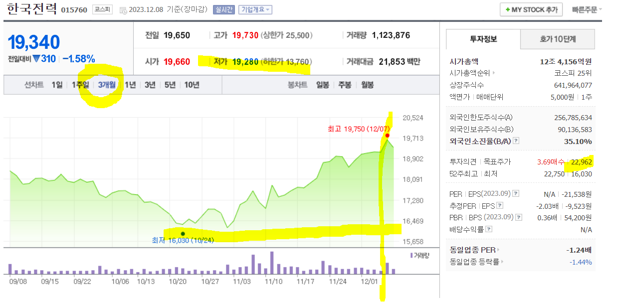 한국전력 주가 분석