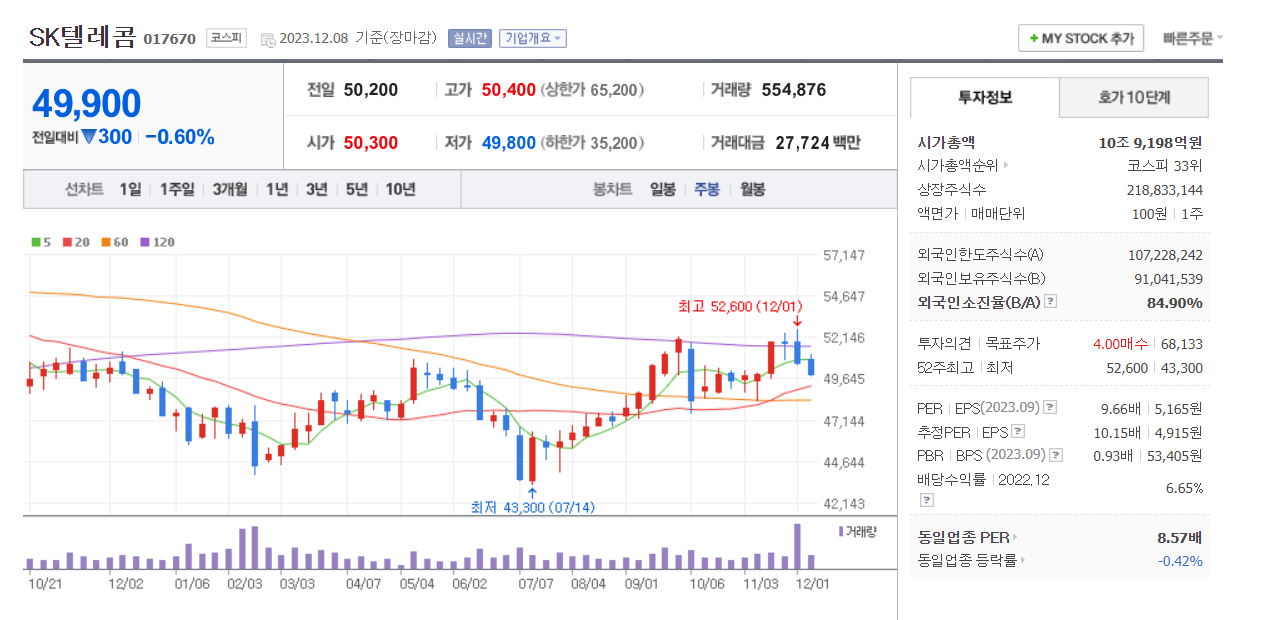 SK텔레콤 주가 분석