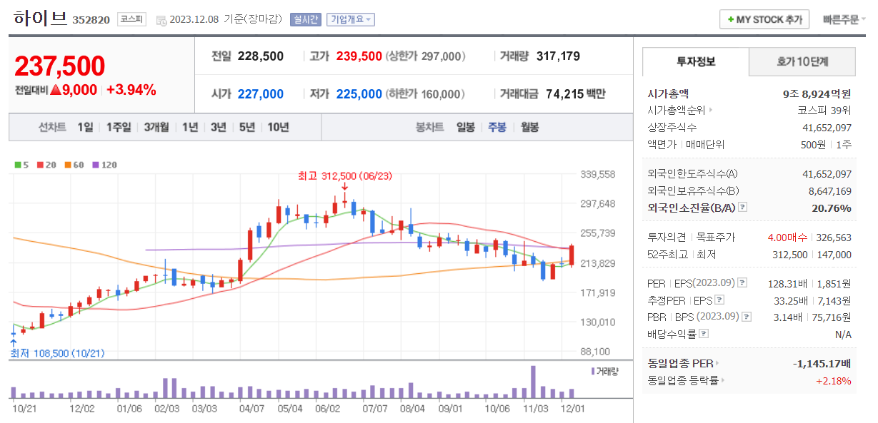 이 글에서는 하이브 주가 전망과 목표 주가, 기업 정보에 대해서 설명합니다. 주식 거래에서 주목해야 할 점은 미래의 기업 가치를 예측하고 먼저 움직이는 것입니다. 투자 대상을 선택하기 전에 현재 기업 상황과 지표를 살펴보아야 합니다. 하이브 주식의 주요 현황과 투자 정보를 확인하시고 주식 투자에 유용한 정보들을 모아두었으니 투자 결정에 도움을 받으실 수 있을 것입니다..