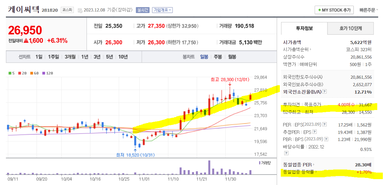 케이씨텍 주가 분석