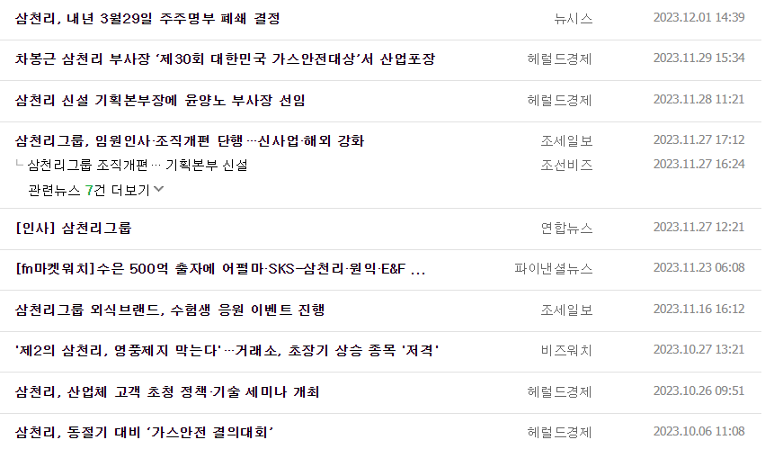 삼천리, 내년 3월29일 주주명부 폐쇄 결정