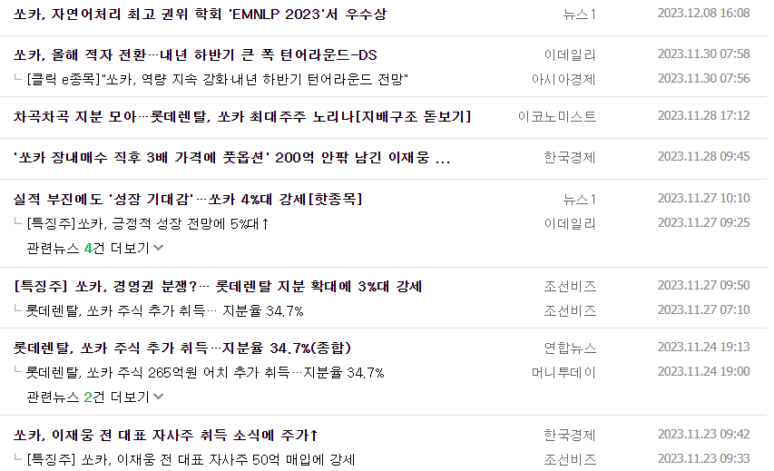 이 글에서는 쏘카 주가 전망과 목표 주가, 기업 정보에 대해서 설명합니다. 주식 투자에서 핵심은 미래의 기업 가치를 예상하고 선제적으로 움직이는 것입니다. 투자 대상을 결정하기 전에 현재 기업의 현황과 수치를 검토하는 것이 필요합니다. 쏘카 주식의 주요 현황과 투자 정보를 확인하시고 주식 투자에 도움을 줄 자료들을 모아 두었으니 투자 결정에 도움을 받으시길 바랍니다..