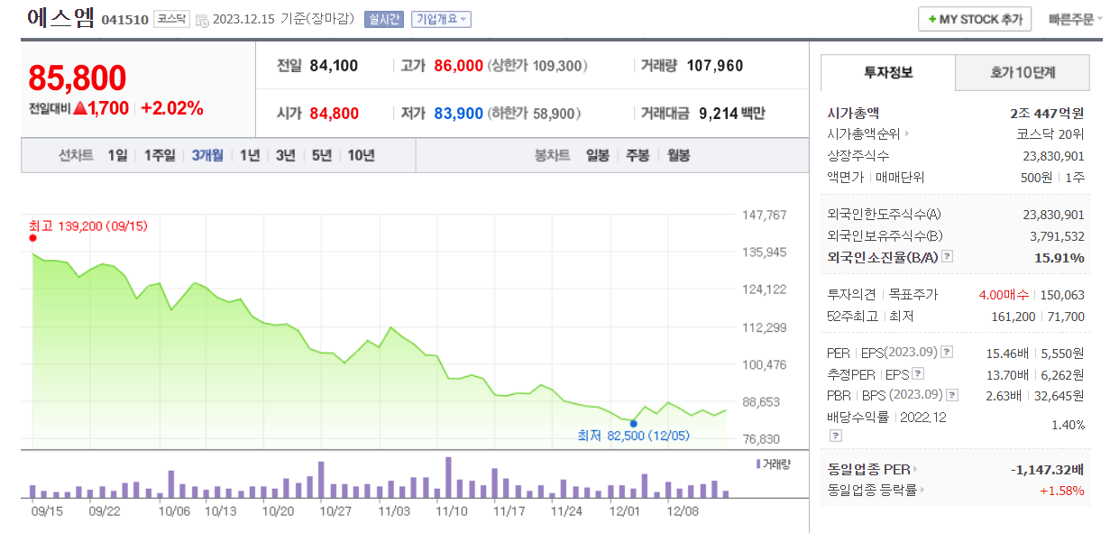 이 글에서는 에스엠 주가에 대한 전망과 목표 주가, 그리고 기업 정보를 소개합니다. 주식 투자의 핵심은 미래의 기업 가치를 예측하고 미리 행동하는 것에 있습니다. 어떤 종목을 선택하기 전에는 반드시 현재 기업의 상태와 여러 지표를 면밀히 살펴보는 것이 필요합니다. 에스엠 주식의 현황과 투자 정보를 자세히 확인하시고 주식 투자에 도움이 될 만한 자료들을 종합하여 제공하고 있으니, 투자 결정에 도움을 받기를 기대합니다.
